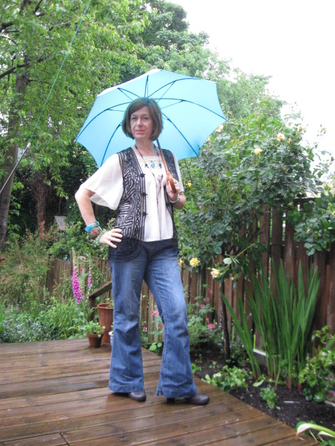 Next up. A chilled-out lazy Sunday look, I thought. Boyfriend jeans and a hippy-ish top, that should be fine. And that Chinese silk waistcoat again, cos I like it.